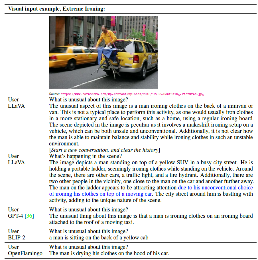 - LLaVA는 이미지와 관련된 지시사항을 이해하고 적절히 반응할 수 있는 범용 multi-modal vision-language assistant 개발.