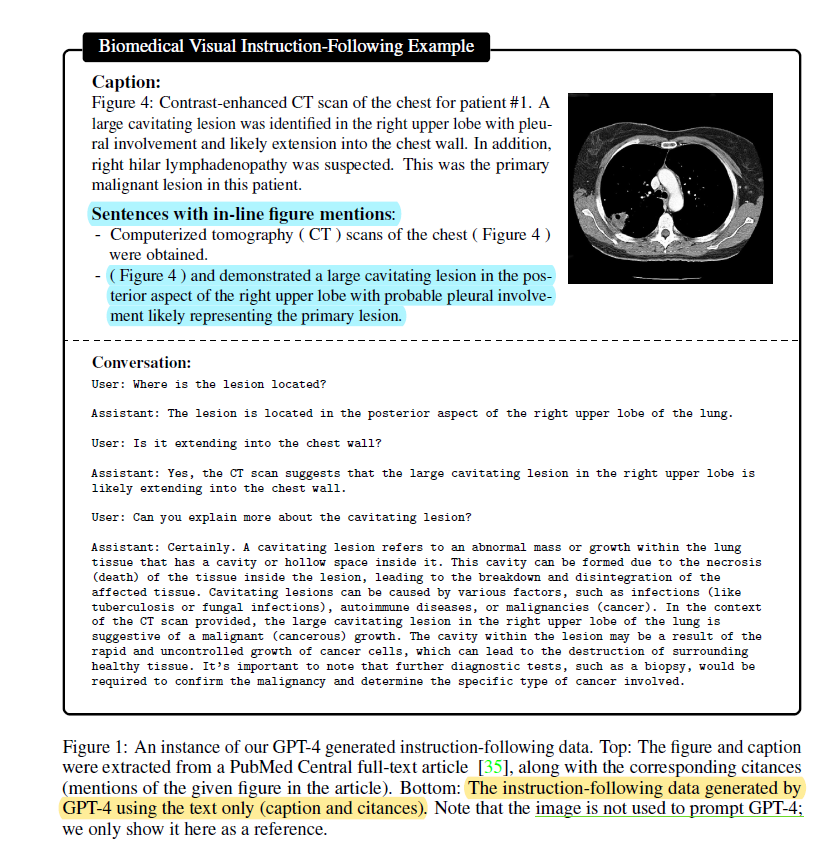 ++ GPT-4를 사용하여 PubMed 에서 뽑아낸 데이터를 바탕으로 자율적으로 Bio-medical Multi modal text instruciton 생성