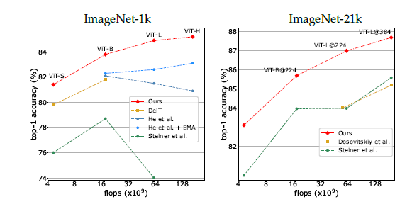 These self-supervised learning method are shown the superior result than supervised learning manner. [BeiT], [MAE] However, in this paper, we proposed new data-efficient pre-training method using original ViT based on the DeiT augmentation method, which can solve the huge training training data problem in ViT. DeiT III can surpass agian to the self-supervised learning method without knowledge distillation. That's the reason of our paper titled "Revenge of the ViT"
