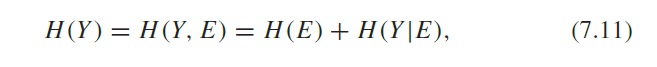 - 그리고 H(Y)는 다음과 같이 변환할 수 있는데, H(Y=y) = H(Y=0, E=0) + H(Y=0, E=1) + H(Y=0, E=e) + H(Y=1) + H(Y=e)와 같이 전개할 수 있으므로 H(Y) = H(Y, E)라고 할 수 있다.